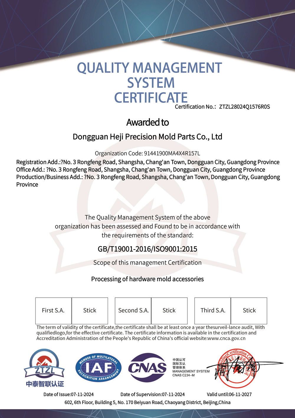 东莞市合济精密模具配件有限公司成立于2017年,是一家专注于高精度模具零件加工型企业。我司拥有40余人的专业团队,厂区位于东莞长安镇上沙,占地面积约1500㎡。